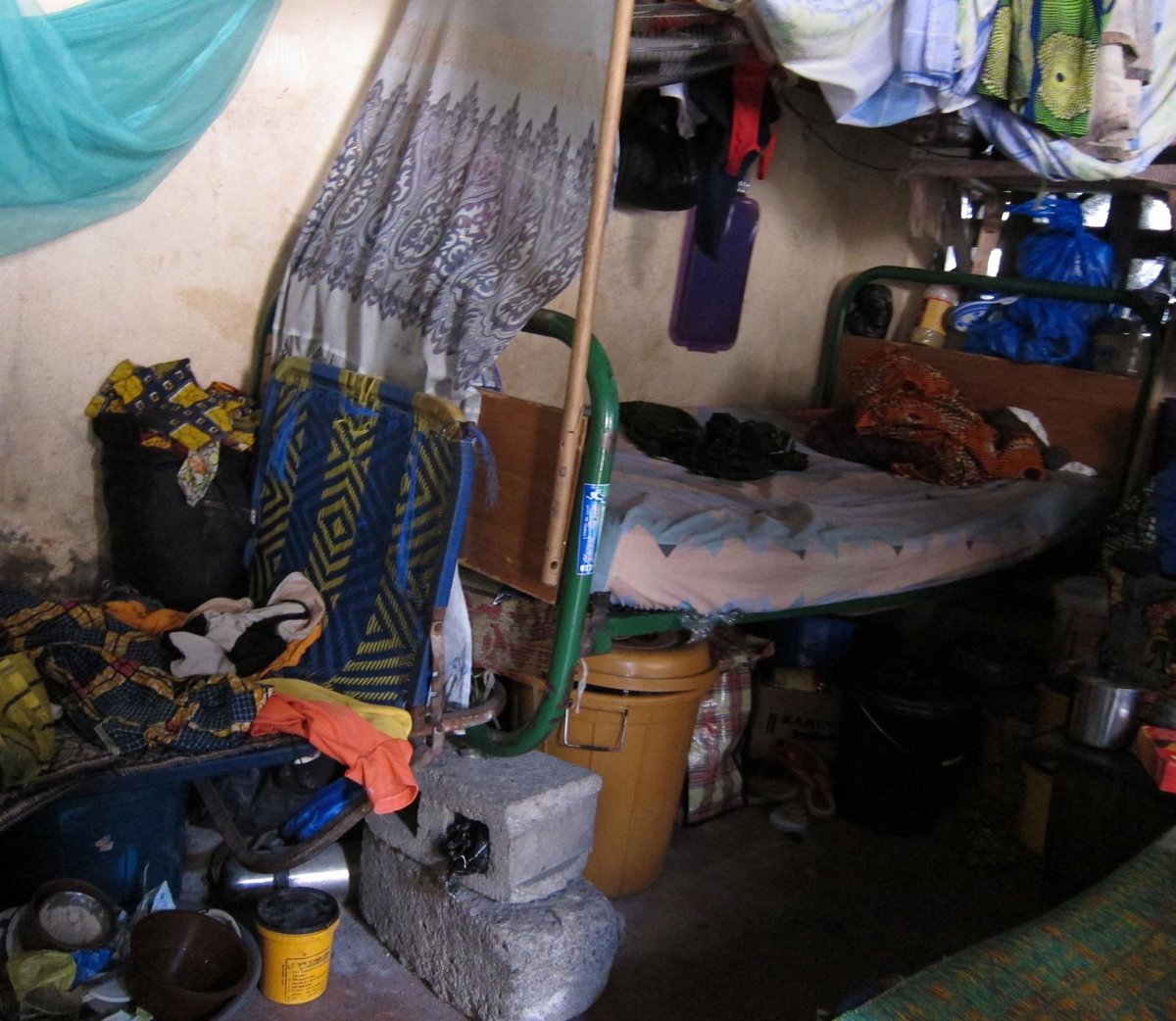 Díez señala que toda la población de la cárcel, que se concentra buscando la sombra en un laberinto de pasillos en torno a barracones austeros y pequeñas chabolas, es encerrada en los pabellones donde deben dormir a partir de las seis de la tarde. La superpoblación del centro es tal, que en estos recintos tienen que colocarse prácticamente "unos encima de otros" y aprovechar cada centímetro cuadrado de suelo para aguantar hasta el amanecer. Por eso, afirma, "si enferma uno, enferman muchos".