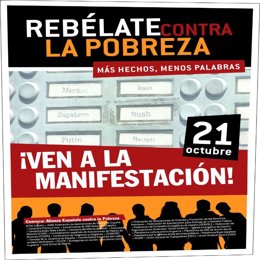 La Alianza Española contra la Pobreza, plataforma que aglutina a más de mil organizaciones, colectivos y movimientos ciudadanos, insta a la sociedad a "rebelarse contra la pobreza" en la Semana de Acción Global que arranca mañana lunes y que se prolongará hasta el sábado, cuando tendrán lugar manifestaciones en cuarenta ciudades españolas. Durante seis días, se sucederán las actividades y movilizaciones en todo el país para exigir 'Más hechos y menos palabras' en el cumplimiento de los Objetivos del Milenio.
