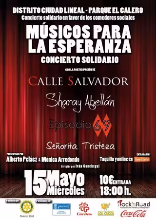 Actualmente, más de 1,3 millones de personas en España comen diariamente en los comedores sociales. Para ayudar a paliar esta situación y recaudar fondos, los clubes Rotarios de Madrid pusieron en marcha hace un año la iniciativa 'Músicos para la Esperanza', una serie de festivales que protagonizan jóvenes promesas de la música de entre 12 y 22 años, con el apoyo de profesionales. El de este 15 de mayo será el quinto de estos actos solidarios.