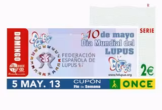 La ONCE ha anunciado que los cinco millones de cupones que se venderán en toda España el 5 de mayo de este fin de semana irá dedicado a conmemorar el 'Día Mundial del Lupus' que se celebra el próximo 10 de mayo.