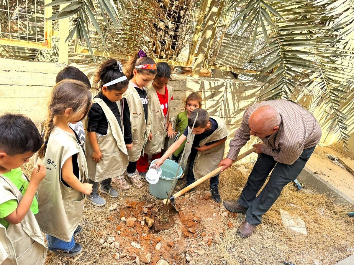 A group of children are planting a tree in the north of the West Bank as part of an initiative of the local Green Committee of their village - WORLD VISION