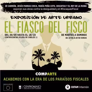 Oxfam Intermón inaugura este martes 20 de septiembre la exposición 'El fiasco del fisco' en CentroCentro, una muestra en la que los artistas urbanos Ze Carrión, Jesús Parras Chica, María Peña Coto, DosJotas y el Rey de la Ruina hacen su interpretación artística de la campaña #IGUALES- 'No al Escaqueo'.