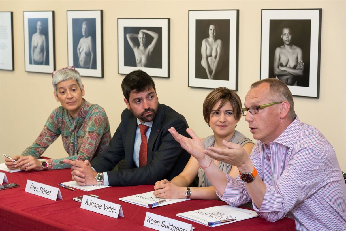 El fotógrafo y cineasta Koen Suidgeest ha inaugurado este martes en la sede de Fundación ONCE en Madrid la exposición 'Costuras a flor de piel', en la que han participado más de 200 mujeres que conviven con el cáncer de mama con el objetivo de concienciar sobre estos tumores.