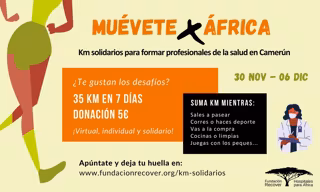Fundación Recover ha convocado la iniciativa 'Muévete x África', que se desarrollará del 30 de noviembre al 6 de diciembre, con la que pretende movilizar a la sociedad para recorrer cinco kilómetros al día durante una semana y registrar ese movimiento para recaudar fondos para formar sanitarios en Camerún.