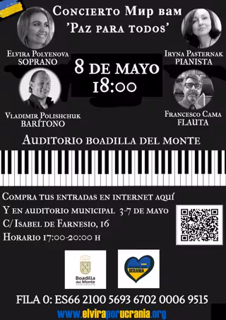 El primer recital está incluido dentro del programa Boadilla Clásico, organizado por el Ayuntamiento de este municipio, que ha cedido el espacio y cuyas entradas pueden comprarse directamente online. Junto Polyenova, estarán los músicos ucranianos Iryna Pasternak (piano) y el barítono Vladimir Polishchuk, además del flautista italiano Francesco Cama.