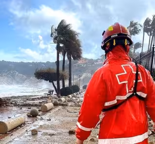 Miembro de un equipo de emergencias de Cruz Roja Española en medio de la borrasca Gloria - CRUZ ROJA ESPAÑOLA