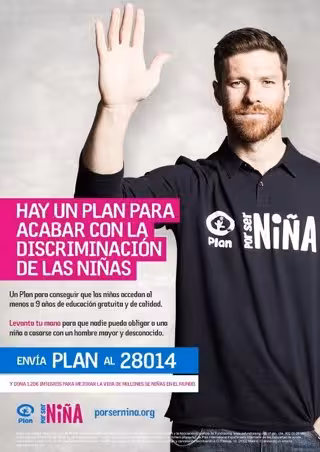 Xabi Alonso se ha convertido en el nuevo embajador la campaña anual de Plan Internacional 'Por ser niña', con la que exigen a Naciones Unidas que garantice al menos nueve años de educación gratuita y de calidad para las niñas, según ha anunciado la organización.