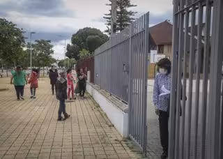 Personas en la puerta de la Fundación Don Bosco, para recibir alimentos del Proyecto Fraternitas, que atiende a familias vulnerables de dos de los barrios más pobres de España en Sevilla - María José López - Europa Press
