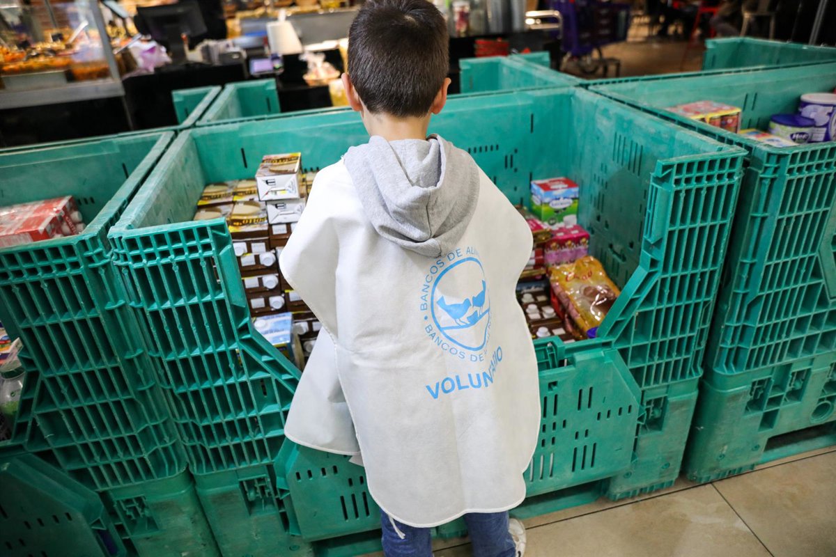 Niños colaborando como voluntarios en el Carrefour de Alcobendas, uno de los muchos puntos de recogida de alimentos. En Madrid, a 24 de noviembre de 2019. - Jesús Hellín - Europa Press