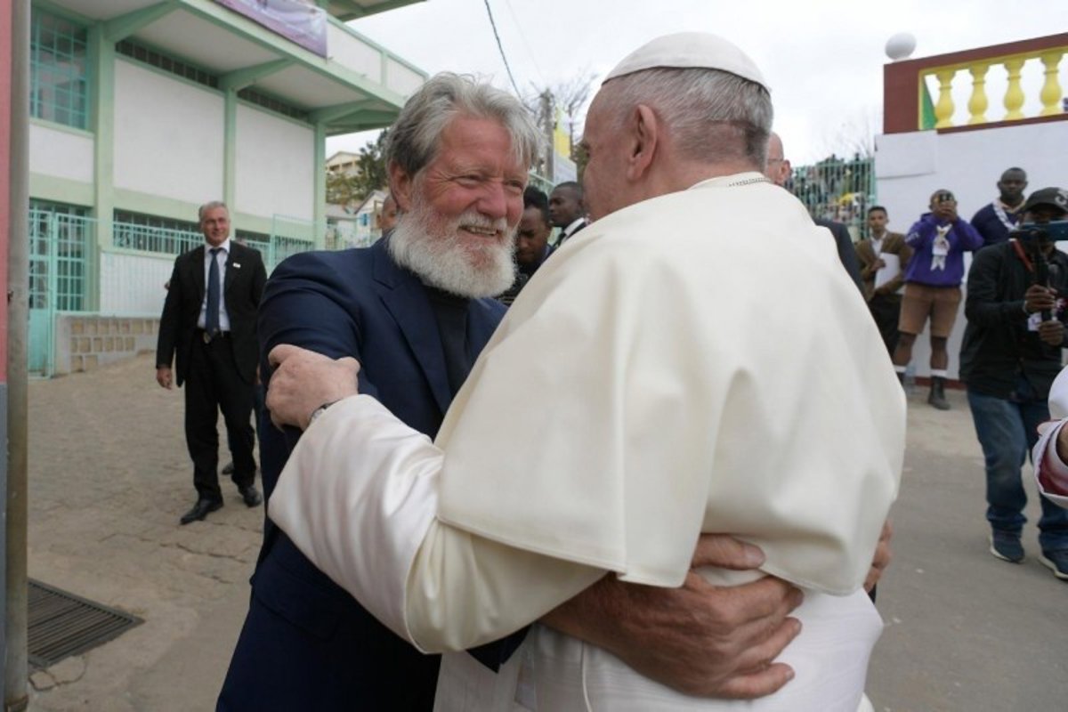 El padre Opeka junto al Papa Francisco, durante la visita del Pontífice a Madagascar en 2019 - VATICANO