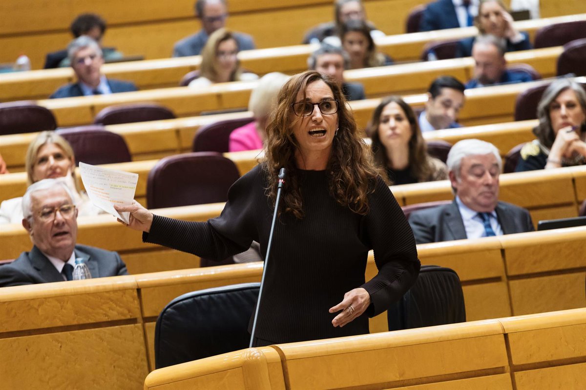 La ministra de Sanidad, Mónica García, interviene durante una sesión plenaria en el Senado. - Carlos Luján - Europa Press