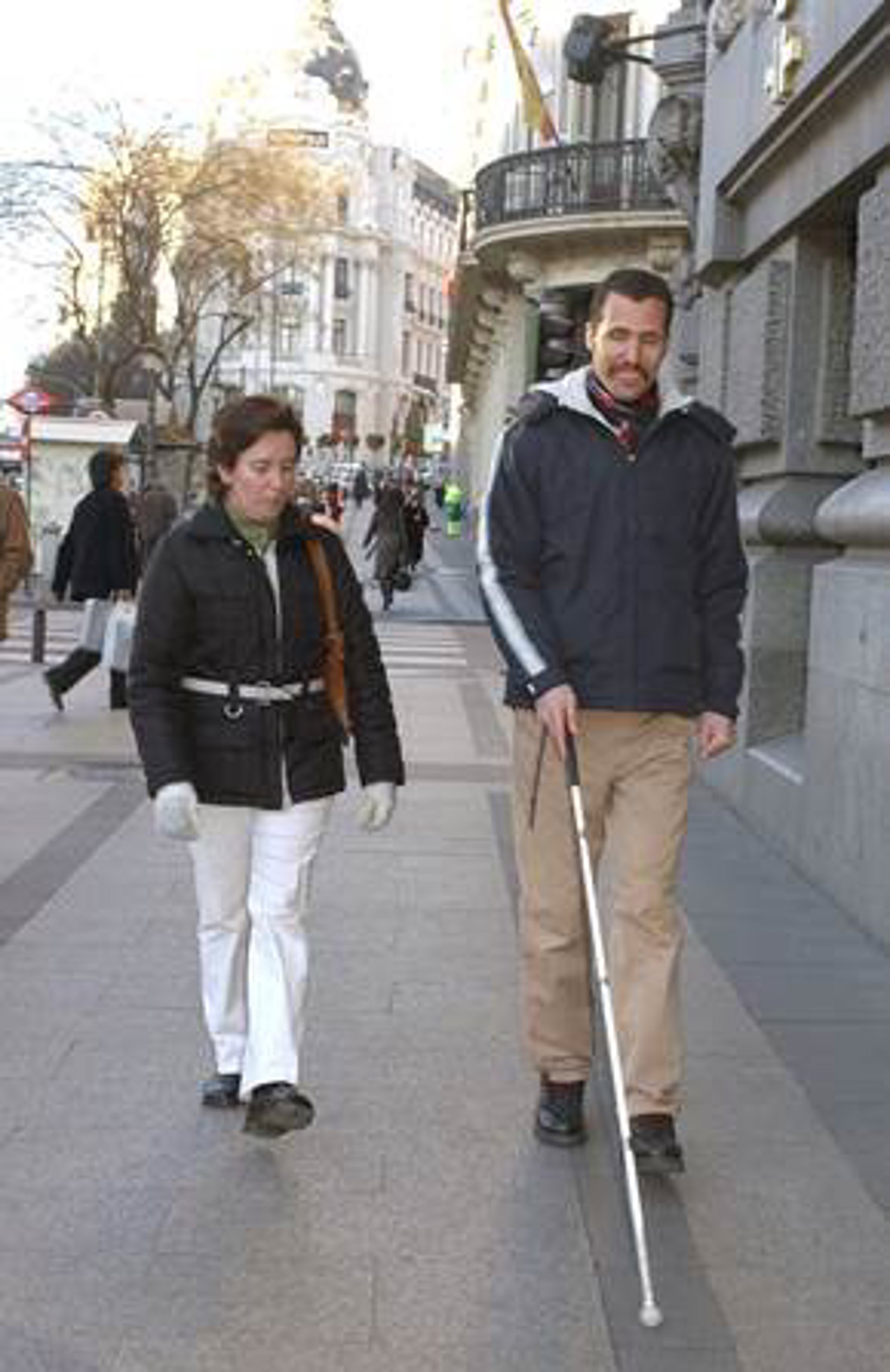 Técnico de rehabilitación de la ONCE enseñando a usar el bastón blanco a una persona extranjera. - ONCE
