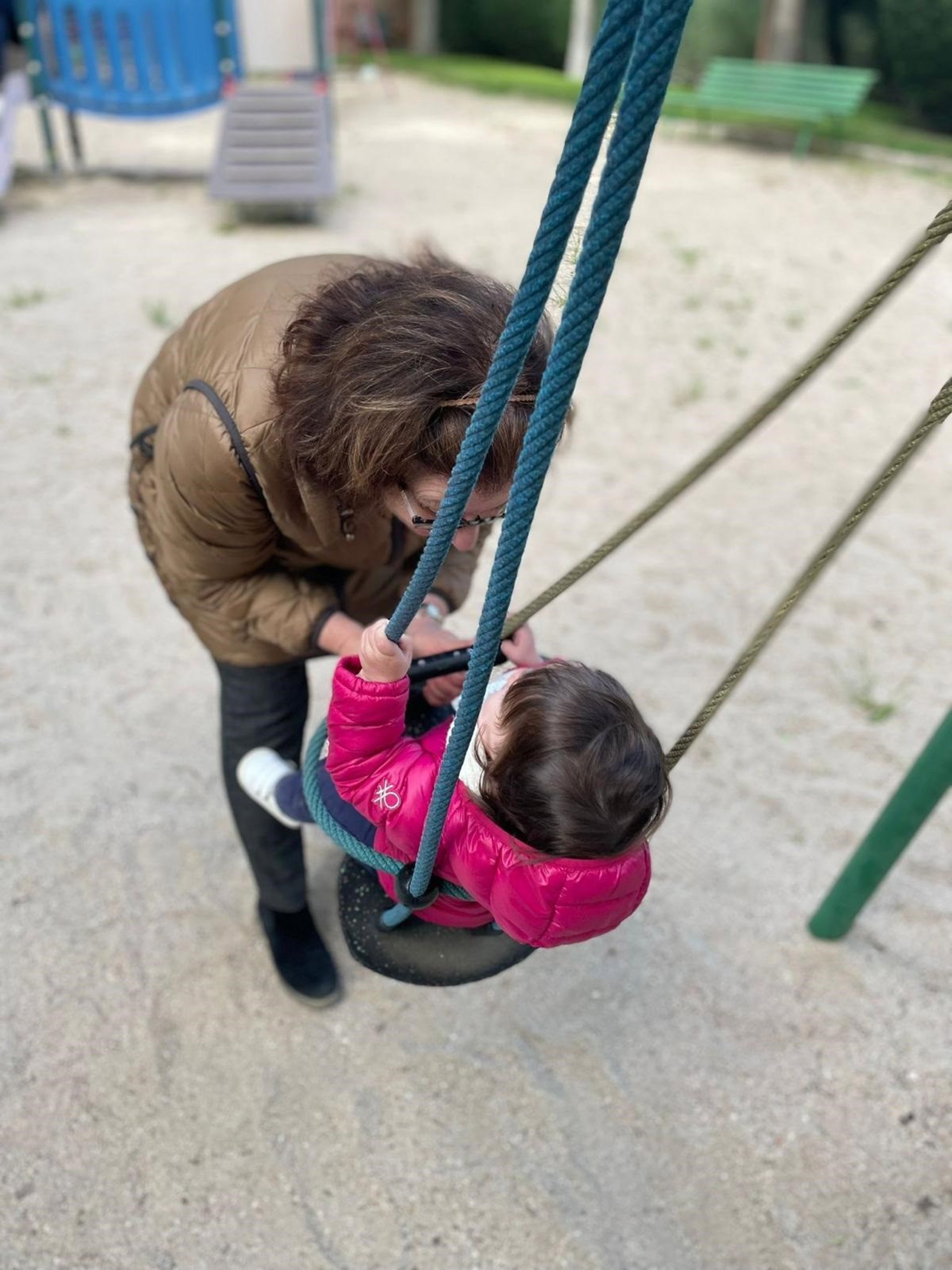 Una abuela y su nieta juegan en un columpio en el parque - EUROPA PRESS