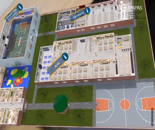 Por un lado, con esta nueva aplicación se ofrece información y conocimiento sobre las medidas, recursos y productos de apoyo precisos para garantizar la plena accesibilidad al alumnado con discapacidad auditiva en el entorno escolar, aportando un modelo interactivo en realidad aumentada de referencia acerca cómo debe ser un centro educativo acondicionado acústicamente y con recursos de accesibilidad auditiva, a la información y a la comunicación.