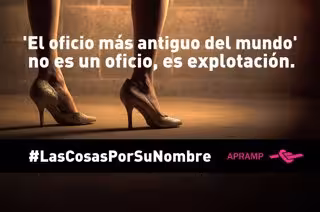 "No son 'clientes', son puteros. #LasCosasPorSuNombre", "No son 'locales de alterne'. Son lugares de explotación", "No son 'prostitutas'. Son mujeres prostituidas" o "El oficio más antiguo del mundo no es un oficio, es explotación" son algunos de los mensajes de esta campaña con la que APRAMP quiere hacer una llamamiento a la sociedad en su conjunto para que recupere su capacidad de indignación ante la demanda de prostitución.