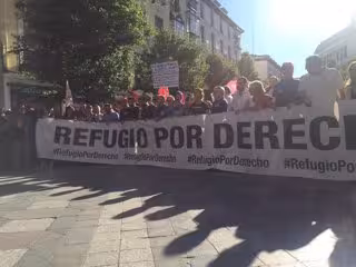 Cientos de personas han partido pasadas las 19.00 horas de este lunes 20 de junio de la plaza madrileña de Ópera tras una pancarta que reivindica 'Refugio por derecho', el lema de una de las manifestaciones convocadas por sindicatos y ONG por todo el territorio nacional para exigir el respeto a los derechos fundamentales de las personas que se ven forzadas a huir de su lugar de origen.