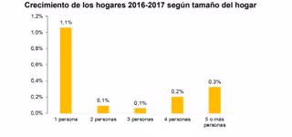 De acuerdo a los datos del INE, el número de hogares en España volvió a aumentar durante 2017, alcanzando los 18,5 millones como valor medio, lo que representa un 0,4% más que en el año anterior al haber 66.700 hogares más. La población residente en viviendas familiares se incrementó un 0,2% respecto a 2016, mientras que el tamaño medio de los hogares disminuyó hasta 2,49 personas por hogar.