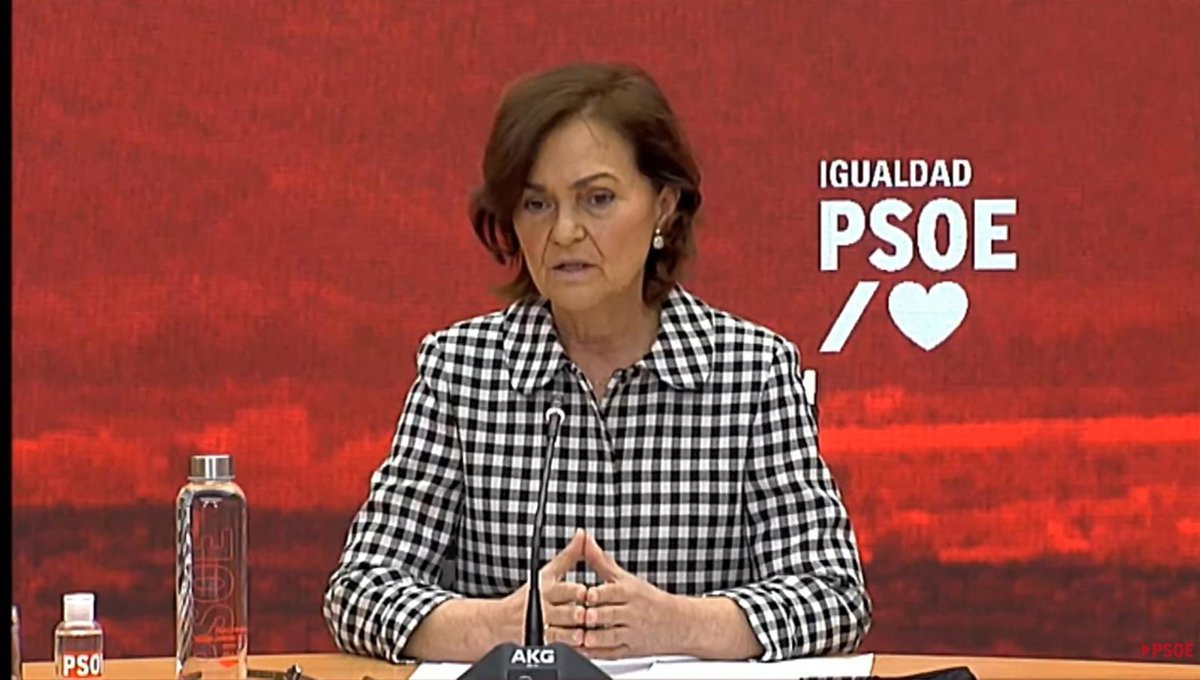 La vicepresidenta primera del Gobierno, Carmen Calvo, durante un acto del PSOE - CAPTURA PSOE