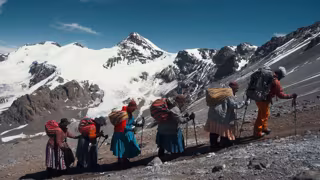 Así, el documental --que se estrenó en 2019-- narra la expedición de Dora, Liita, Lidia, Cecilia y Elena al monte Aconcagua de Argentina (6.962 metros): cinco mujeres indígenas bolivianas, las 'Cholitas escaladoras', que se proponen escalar la montaña más alta de América.