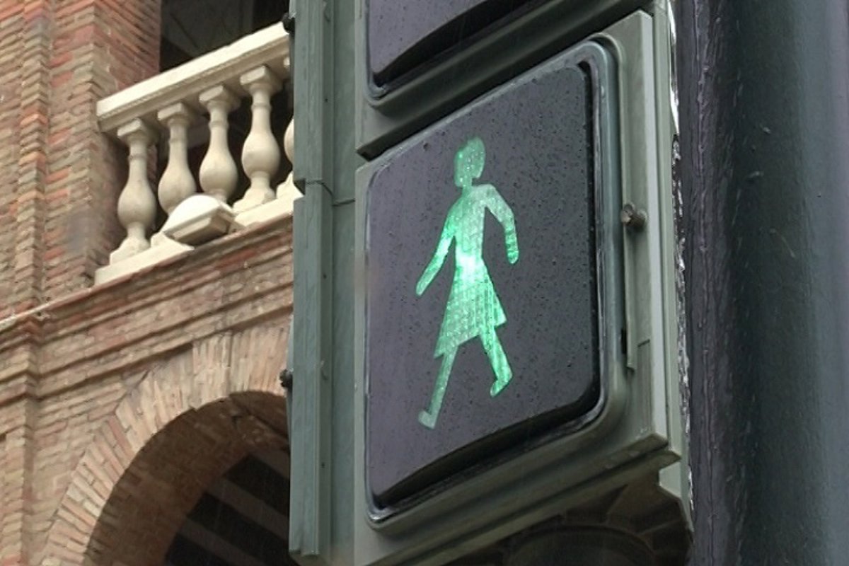 El Ayuntamiento de Valencia ha instalado los primeros 20 semáforos 'paritarios' de la ciudad, en los que el icono del peatón tradicional compartirá espacio con la silueta de una mujer con falda.