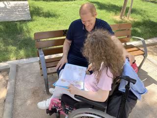 Un niña en silla de ruedas junto a su padre. - COCEMFE CV - Archivo