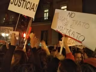Colectivos feministas se han concentrado este viernes 17 de noviembre a las 18 horas, frente a la sede del ministerio de justicia en Madrid, para protestar por la "justicia patriarcal" que, a su juicio, suponen las medidas tomadas por el juez encargado del caso de la presunta violación en grupo de una mujer durante las fiestas de San Fermín del pasado año.