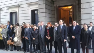 Junto a los diputados también han querido guardar el minuto de silencio los trabajadores del Congreso, algunos de los cuales han portado algunos carteles en los que, entre otras leyendas, se podía leer "No se mueren, las asesinan'.