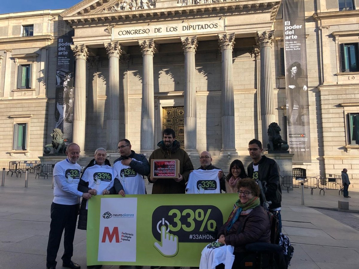 La Asociación Esclerosis Múltiple España ha entregado este lunes en el Congreso más de 175.000 firmas en las que se reclama un cambio en el baremo, para que las enfermedades neurodegenerativas tengan la incapacidad del 33% automáticamente después de su diagnóstico.