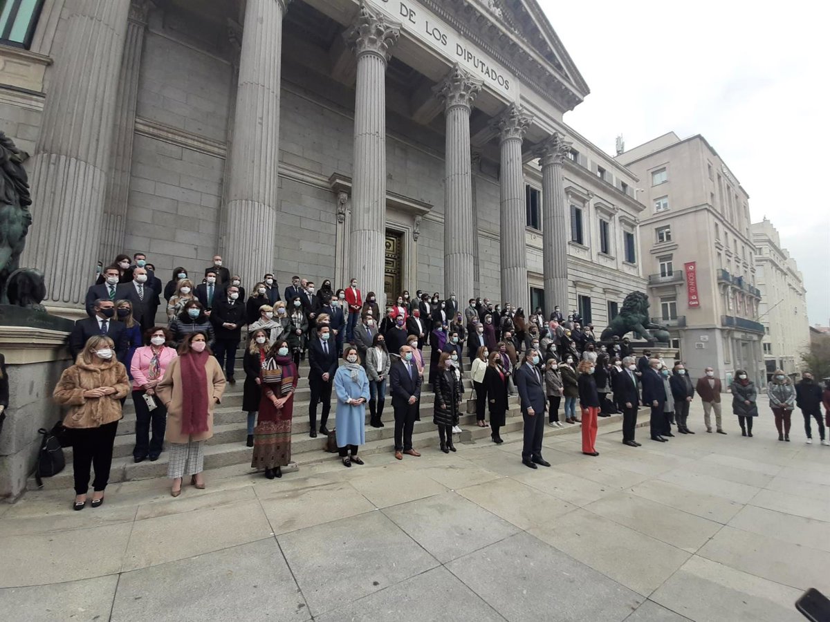 Archivo - Todos los grupos parlamentarios, excepto Vox, guardan minuto de silencio frente al Congreso en memoria de las víctimas de la violencia de género. 2020 - EUROPA PRESS - Archivo
