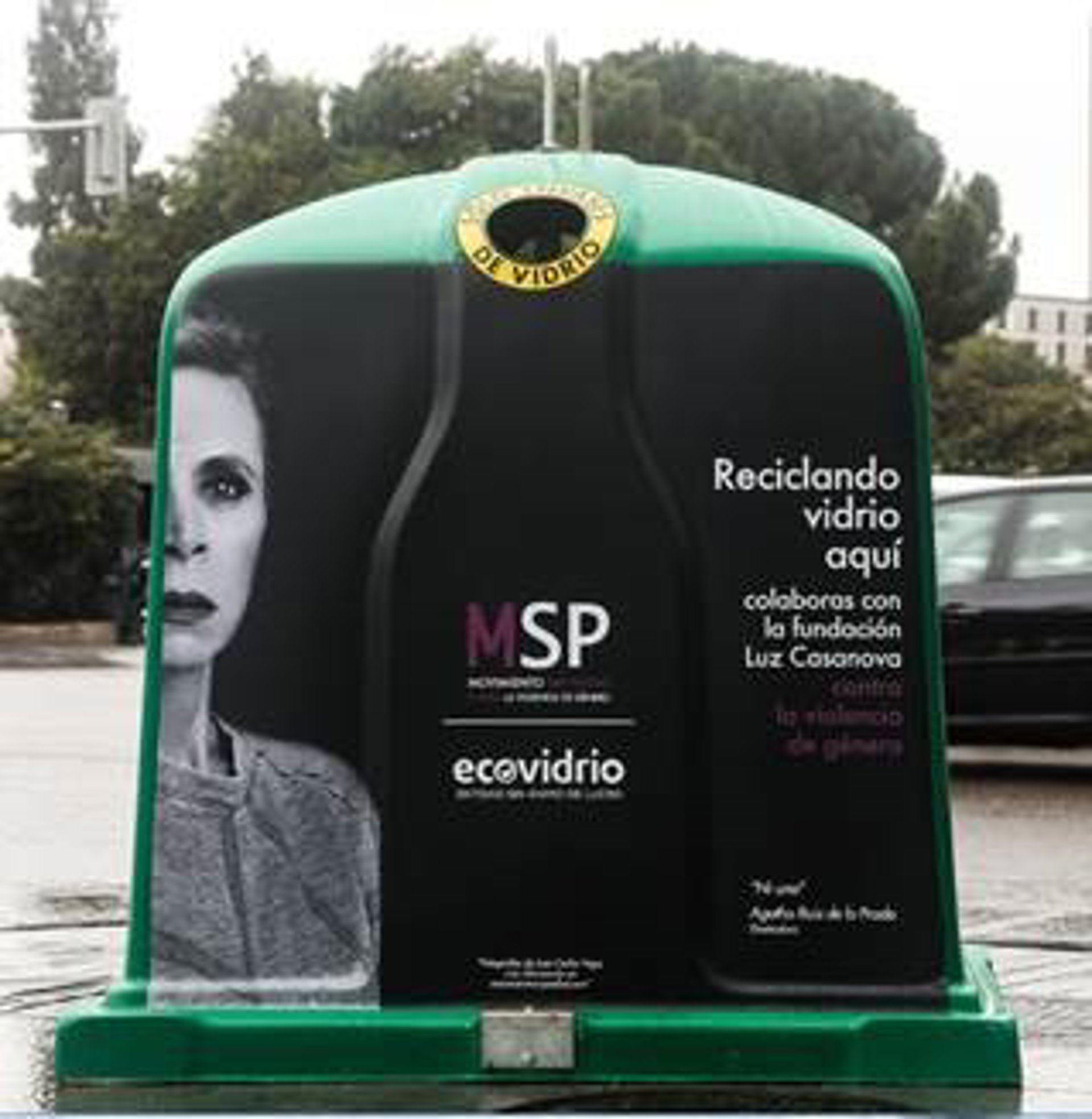 Así, el vidrio que se recoja en los 20 contenedores vinilados con las imágenes de la exposición se transformará en fondos destinados a proyectos contra violencia de género impulsados por la Fundación Luz Casanova.
