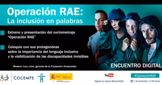 El cortometraje de la Confederación Española de Personas con Discapacidad Física y Orgánica (COCEMFE) 'Operación RAE', dirigido por Borja Álvarez y producido por Kabiria Films, narra el robo de las palabras "minusválido", "discapacitado" e "inválido" para concienciar sobre la importancia del lenguaje exclusivo y "normalizar" la discapacidad.