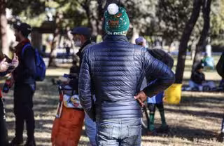 Archivo - Varias personas comen durante el reparto de alimentos a personas sin recursos, en el viejo cauce del río Turia. - Rober Solsona - Europa Press - Archivo