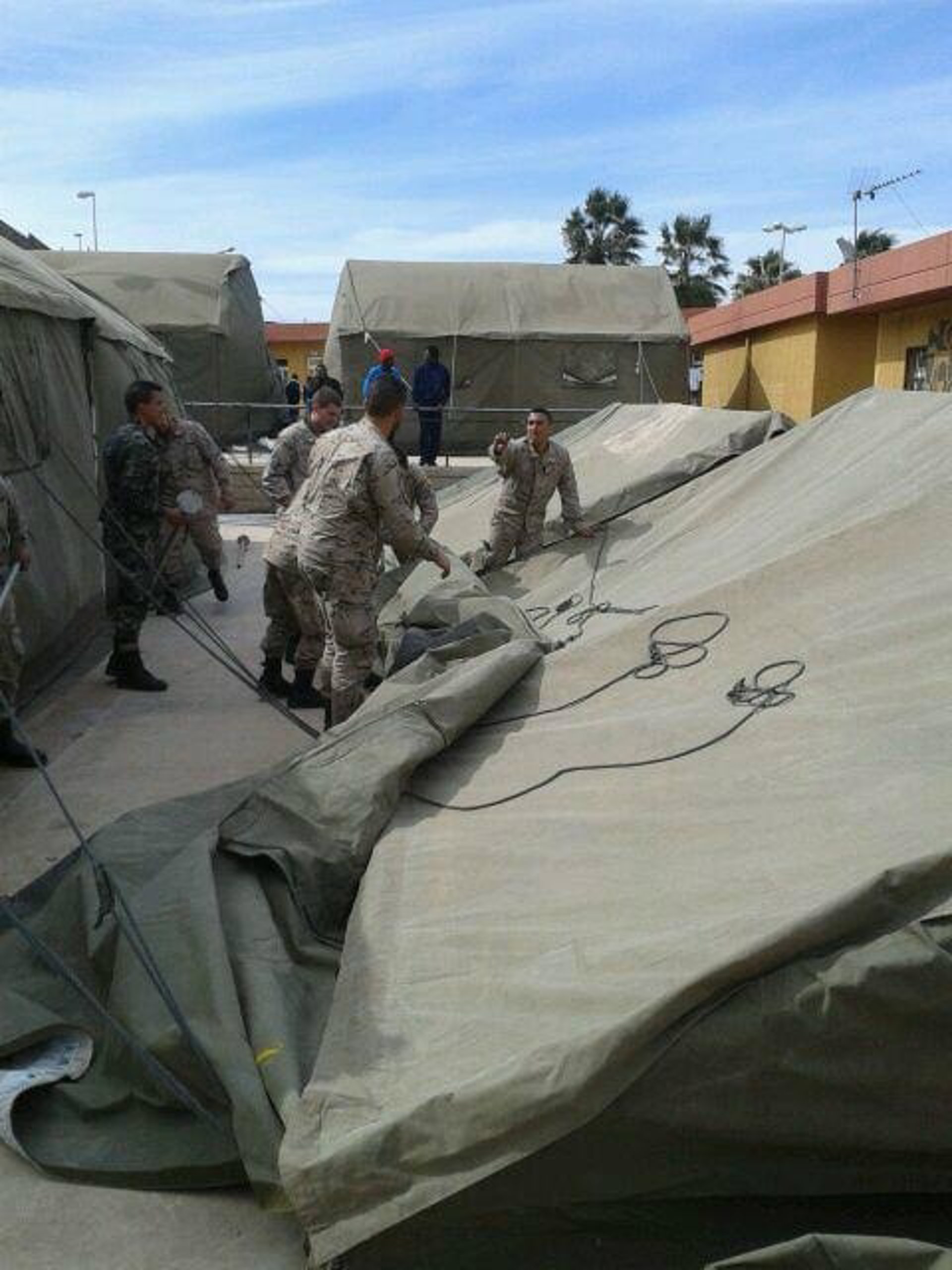Según han informado a Europa Press fuentes de la Comandancia General, tras la entrada de 214 inmigrantes "el Ejército continúa apoyando al CETI Melilla", al colocar a lo largo de este día cinco tiendas de campaña y literas para 150 personas.