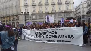 Esta organización ha convocado varias concentraciones en distintas ciudades españolas al grito de "nosotras podemos" y con el objetivo de denunciar la violencia que sufren las mujeres, bajo una gran pancarta con el lema 'Nos queremos vivas, libres y combativas. 8 de marzo. Paramos las clases contra el machismo'.