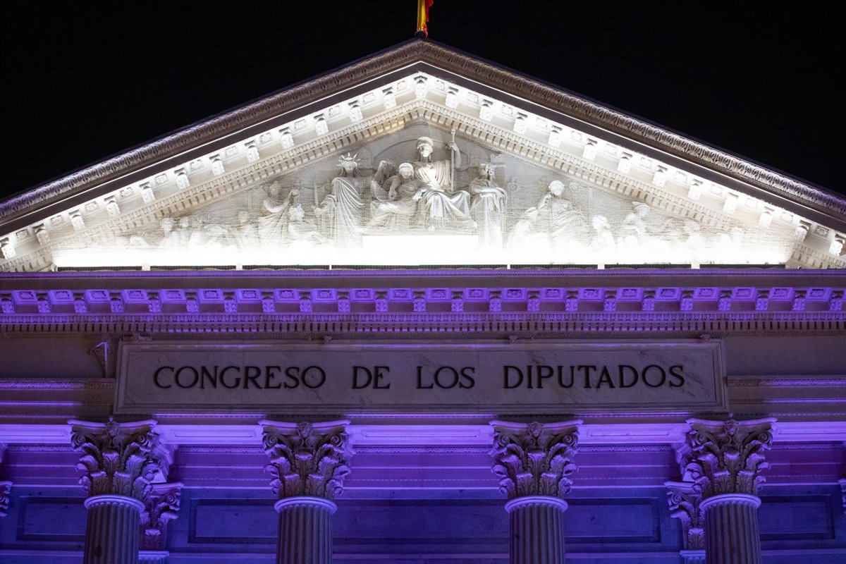 Archivo - La fachada del Congreso de los Diputados iluminada de color morado, a 25 de noviembre de 2023, en Madrid (España). - Alejandro Martínez Vélez - Europa Press - Archivo