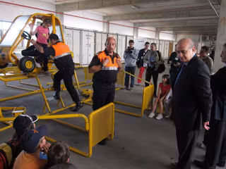 Jorge Fernández Díaz ha recorrido los talleres prácticos de evaluación de aeronaves de aterrizaje de emergencia, circuito de educación vial, simulación de vuelco de vehículos y extinción de incendios y evacuación del recinto escolar. En su visita, ha estado acompañado por el director general de Protección Civil y Emergencias, Juan Díaz Cruz.