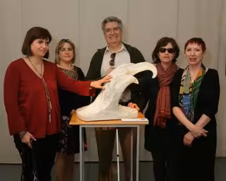 La exposición ha sido inaugurada por la consejera general de la ONCE, Gemma León; la jefa del Departamento de Promoción Cultural y Braille, María José Sánchez Lorenzo; la escultora Sara Giménez; y la técnico del Museo Tiflológico Teresa Díaz.