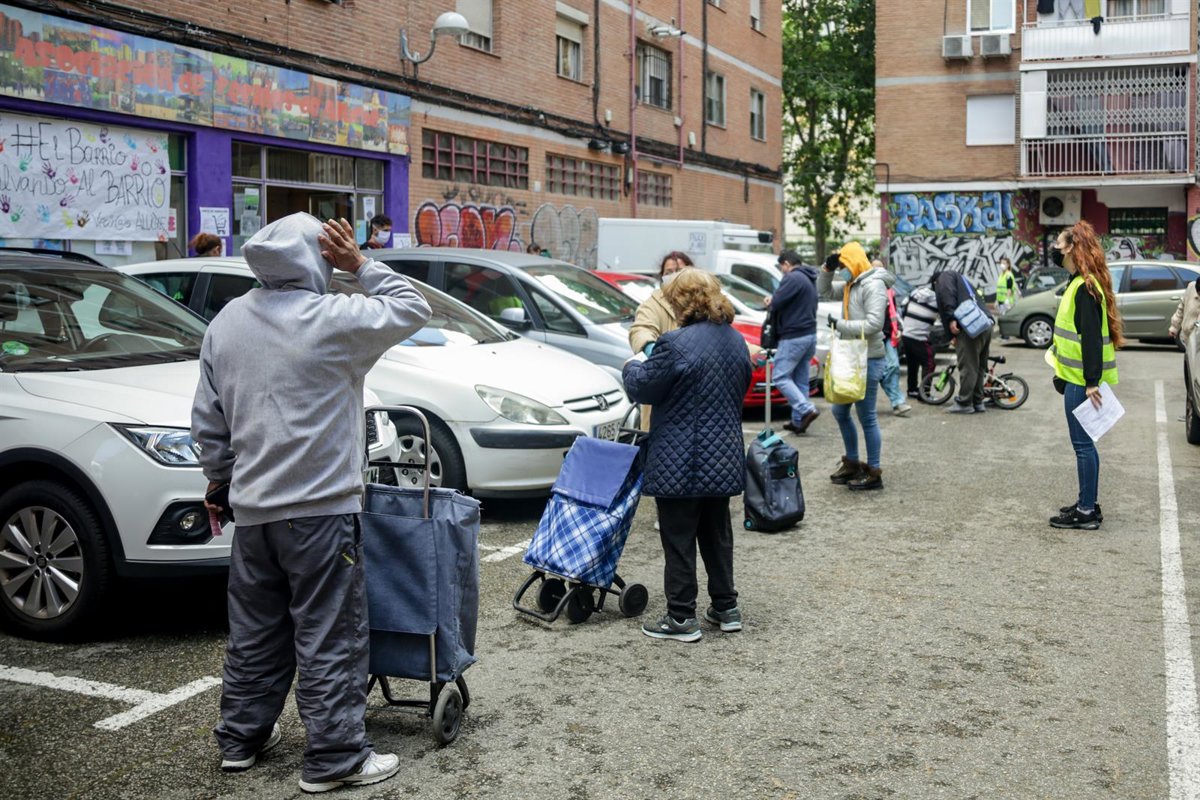 Archivo - Vecinos realizan una cola para recoger bolsas de alimentos durante la pandemia. - Ricardo Rubio - Europa Press - Archivo