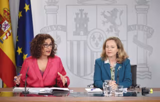 La ministra Portavoz y de Hacienda, María Jesús Montero (i) y la vicepresidenta tercera y ministra de Asuntos Económicos y Transformación Digital, Nadia Calviño (d) durante la rueda de prensa tras el Consejo de Ministros en Moncloa, en Madrid (España), - Eduardo Parra - Europa Press