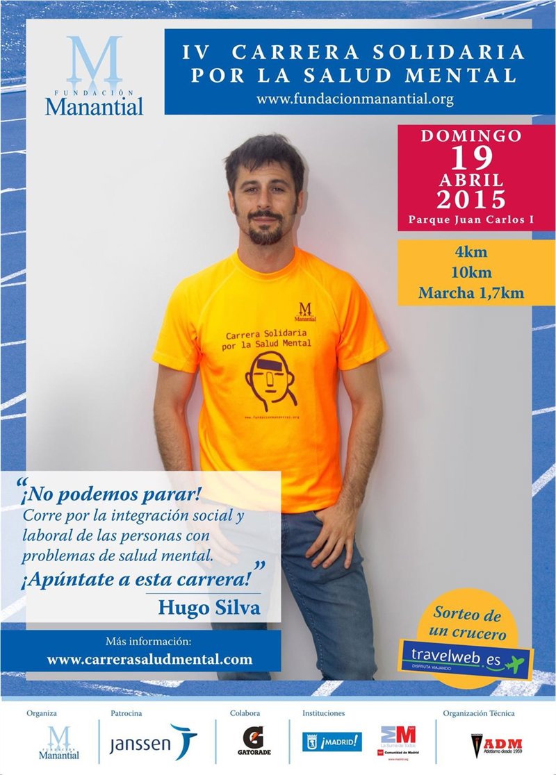 Hugo Silva es el protagonista del cartel de la IV edición de la Carrera Solidaria por la Salud Mental organizada por Fundación Manantial. Bajo el lema "no podemos parar, corre por la integración social y laboral de las personas con problemas de salud mental", el actor ha querido prestar su imagen para la causa y fomentar así una alta participación.