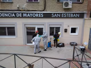 Dos equipos con 8 bomberos comienzan a desinfectar el interior de residencias de mayores de Fuenlabrada - EUROPA PRESS