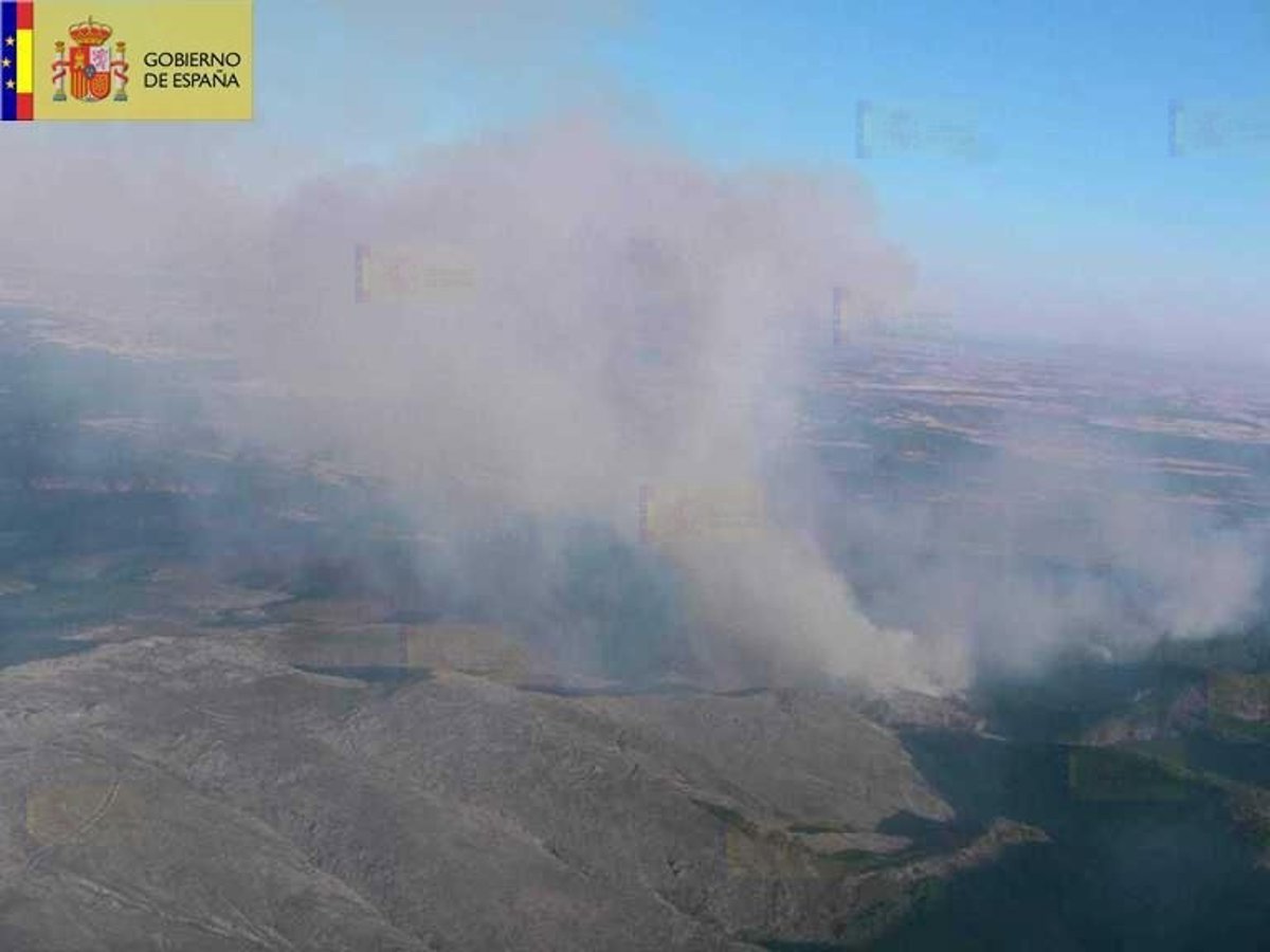 El Ministerio de Agricultura, Alimentación y Medio Ambiente ha enviado tres medios aéreos más, que se suman a los 10 que ya estaban actuando a petición de Castilla-La Mancha para controlar el fuego de Valdepeñas de la Sierra (Guadalajara).
