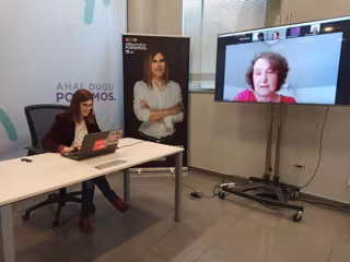 La candidata a lehendakari de Elkarrekin Podemos-IU, Miren Gorrotxategi, en videconferencia con Beatriz Gimeno, directora del Instituto de la Mujer. - ELKARREKIN PODEMOS-IU - Archivo