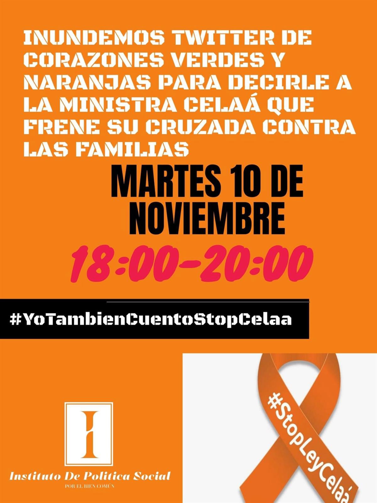 En este sentido, el Instituto de Política Social ha impulsado una campaña para este Martes 10 de Noviembre para exigir a la ministra Celaá que "se detenga de inmediato", bajo el lema '#YoTambienCuentoStopCelaa'.