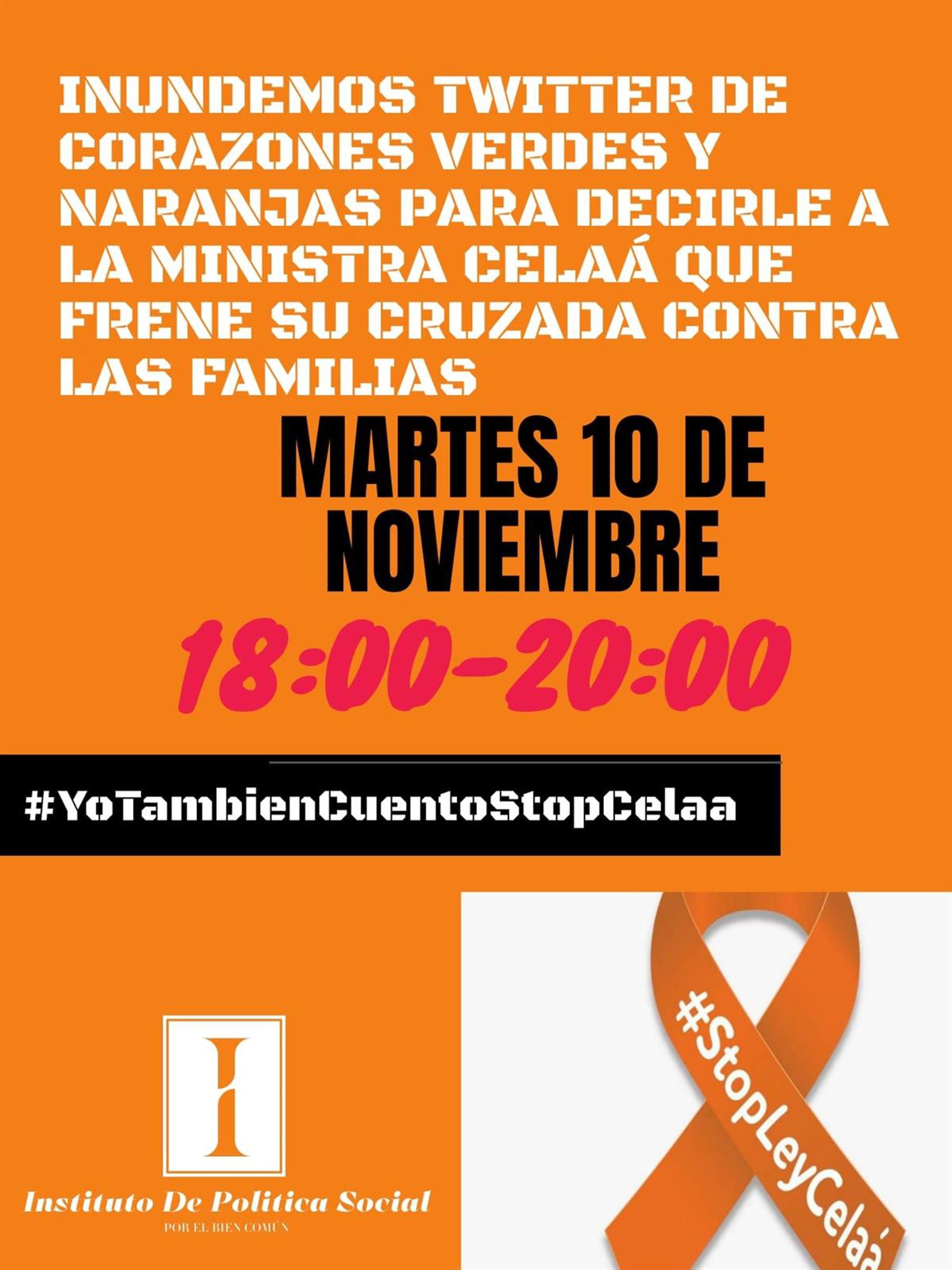 El Instituto de Política Social ha impulsado una campaña para este Martes 10 de Noviembre para exigir a la ministra Celaá que "se detenga de inmediato", bajo el lema '#YoTambienCuentoStopCelaa' - INSTITUTO POLÍTICA SOCIAL