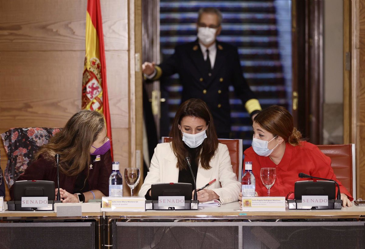 La delegada del Gobierno contra la Violencia de Género, Victoria Rosell; la ministra de Igualdad, Irene Montero; y la secretaria de Estado de Igualdad y contra la Violencia de Género, Ángela Rodríguez - Eduardo Parra - Europa Press