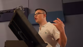 Ángel Galiano en una sesión de doblaje. - CEE MARÍA CORREDENTORA