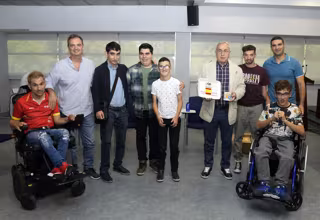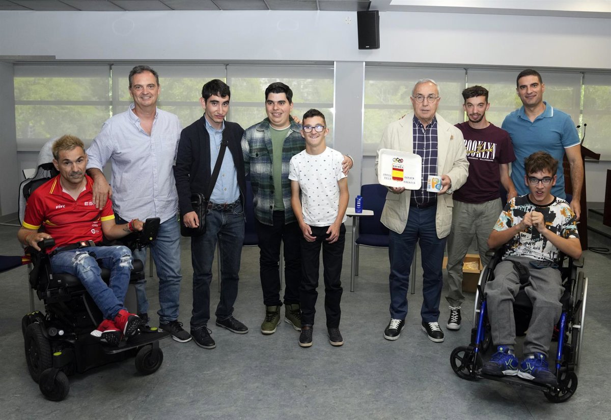 Varios usuarios junto a los responsables de la radio de la Asociación de Personas con Parálisis Cerebral de Badajoz fueron invitados por el presidente del COE, Alejandro Blanco, que hace unos meses fue entrevistado por ellos en su sección cultural.