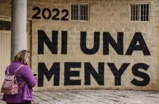 Una mujer pasa por delante de una pared donde se puede leer "Ni una menos" en un acto en memoria de las víctimas de violencia de género, en Valencia. - Rober Solsona - Europa Press