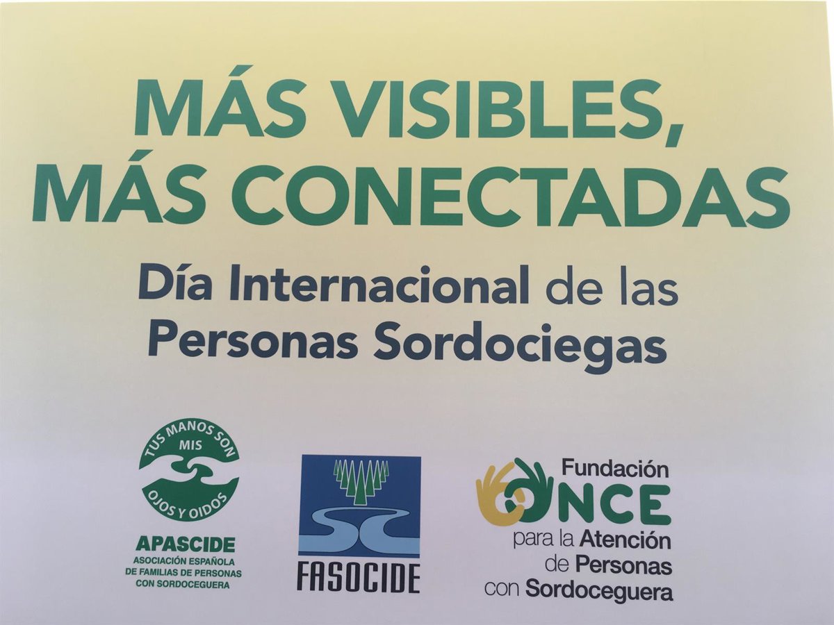 La Federación de Asociaciones de Personas Sordociegas de España (FASOCIDE), la Asociación Española de Familias de Personas con Sordoceguera (APASCIDE) y la Fundación ONCE para la Atención de Personas con Sordoceguera (FOAPS) han reivindicado la visibilización social del colectivo, con el fin de facilitar su comunicación, bajo el lema 'Más visibles, más conectadas', con motivo de la celebración del Día Internacional de las Personas Sordociegas este martes 27 de junio.